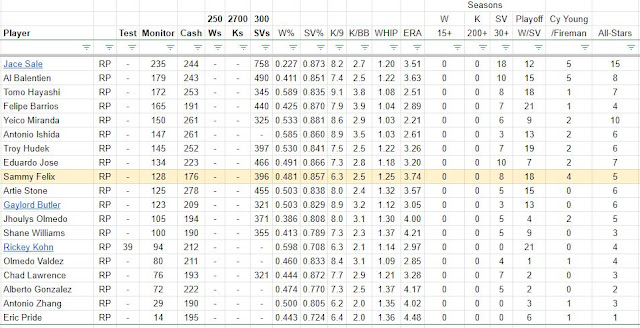 These guys will not likely garner any votes outside of the owner who nominated them (looking at you Nick Ferrell) and should be happy to be on the ballot. Three of them topped or had near 3k strike outs and only Osuna was able to notch 250+ wins. All of their winning percentages site around the .550 mark and only Diego Parraz had more than five 15+ W seasons; who also had 8 playoff wins. There's likely some argument for him but for now we'll loop into him into the pack with the rest.